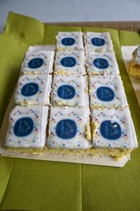 De dag begon feestelijk met een heerlijk gebakje voorzien van ons nieuwe logo. Daarna gingen de verschillende workshops van start, waarvoor leden zich vooraf konden inschrijven. Er waren workshops in Poetsen en masseren met hulp, Grondwerk, Houding en zit (vanaf 14 jaar), Paarden masseren en Manen vlechten.