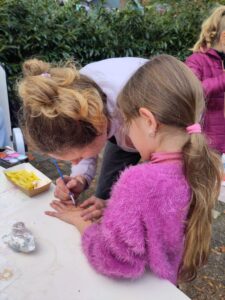 Na een inspirerende ochtend konden de deelnemers genieten van een heerlijke lunch, met friet, snacks, hamburgers en tostiโs. Daarnaast waren er chips, snoep en huisgemaakte cakes te koop โ voor ieder wat wils! Buiten was er een springkussen, schmink en een parcours voor alle stokpaardjes, waar de kinderen hun energie lekker kwijt konden.